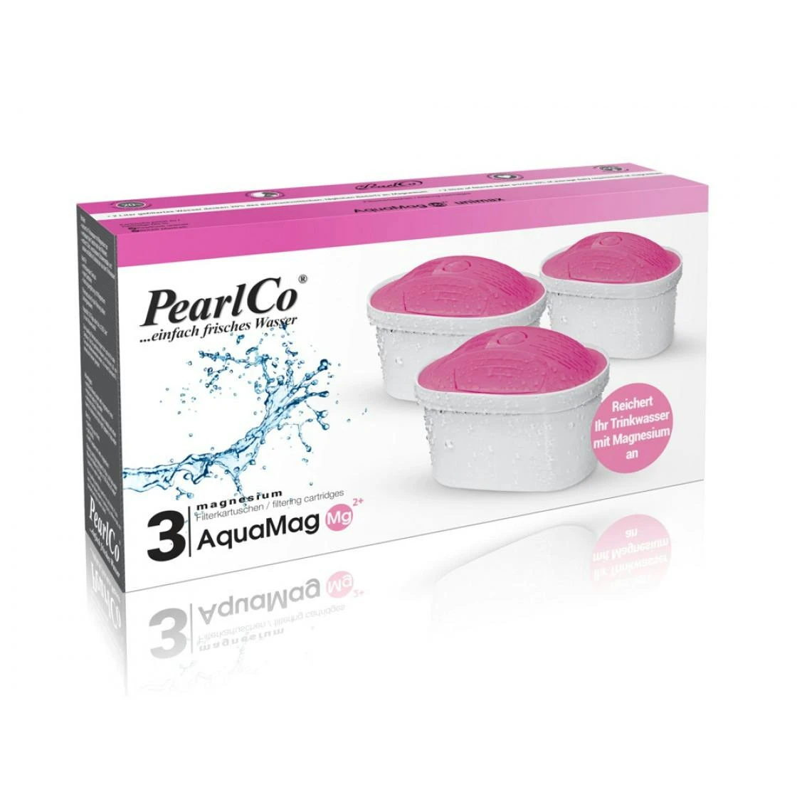 Ökologisch Vermeidung von Plastikmüll Sparsam Verzichten Sie auf Plastikflaschen Reiner Geschmack Speisen und Getränke entfalten ihr volles Aroma PearlCo unimax AquaMag PearlCo AquaMag unimax Wasserfilter-Kartuschen vereinen zwei Funktionen in einer Filterkartusche: Wie die bewährte PearlCo unimax Universal Kartusche entfernt auch die AquaMag-Kartusche geschmacklich störende und teils sogar schädliche Fremdstoffe aus Ihrem Leitungswasser, darunter Kalk, Chlor, Kupfer und Blei.Darüber hinaus geben AquaMag-Kartuschen Magnesium in das gefilterte Wasser ab – ein wichtiger Beitrag für Ihre Gesundheit. 2 Liter mit einer AquaMag-Kartusche gefiltertes Trinkwasser versorgen Ihren Körper bereits mit 20% des täglich benötigten Magnesiums.Wie die regulären PearlCo unimax Universal Filterkartuschen erzeugt auch die AquaMag-Kartusche aromatisches, geschmackvolles Wasser, das für die Zubereitung von Speisen und Getränken oft viel besser geeignet ist als ungefiltertes Leitungswasser